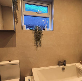 Insurance works - Following a communal pipe leak we removed bathroom suite, removed tiles and damaged plasterboard and re-boarded using moisture resistant plasterboard. Installed new bath and upgraded shower unit. and re-tiled using stainless steel trim. We then renewed flooring throughout the flat using Luxury Vinyl Tiles. We then carried out decoration to walls, ceiling and woodwork, sealing with a cement grey sanitary grade mastic.